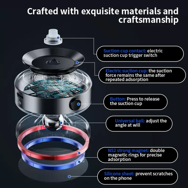 The suction is super strong and only uses power when attaching, so it won’t fall off even if the battery is low. A single charge lasts a long time. For those who drive frequently and need GPS, this wireless charging suction-cup mount keeps your phone fully charged—so convenient!