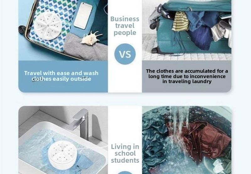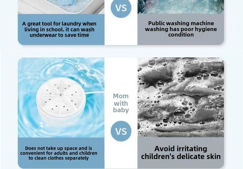 3、Quiet Design: This portable washing machine adopts a thoughtful low-noise design, providing a quiet and comfortable environment, and ultrasonic cleaning is efficient.